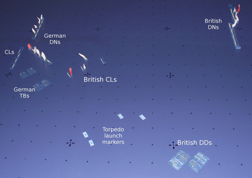 Previous Image Next Image DSCF0011t The British light cruisers stage a suicidal attack to cover the torpedo attack of the destroyers. The destroyers have turned away after they launched.