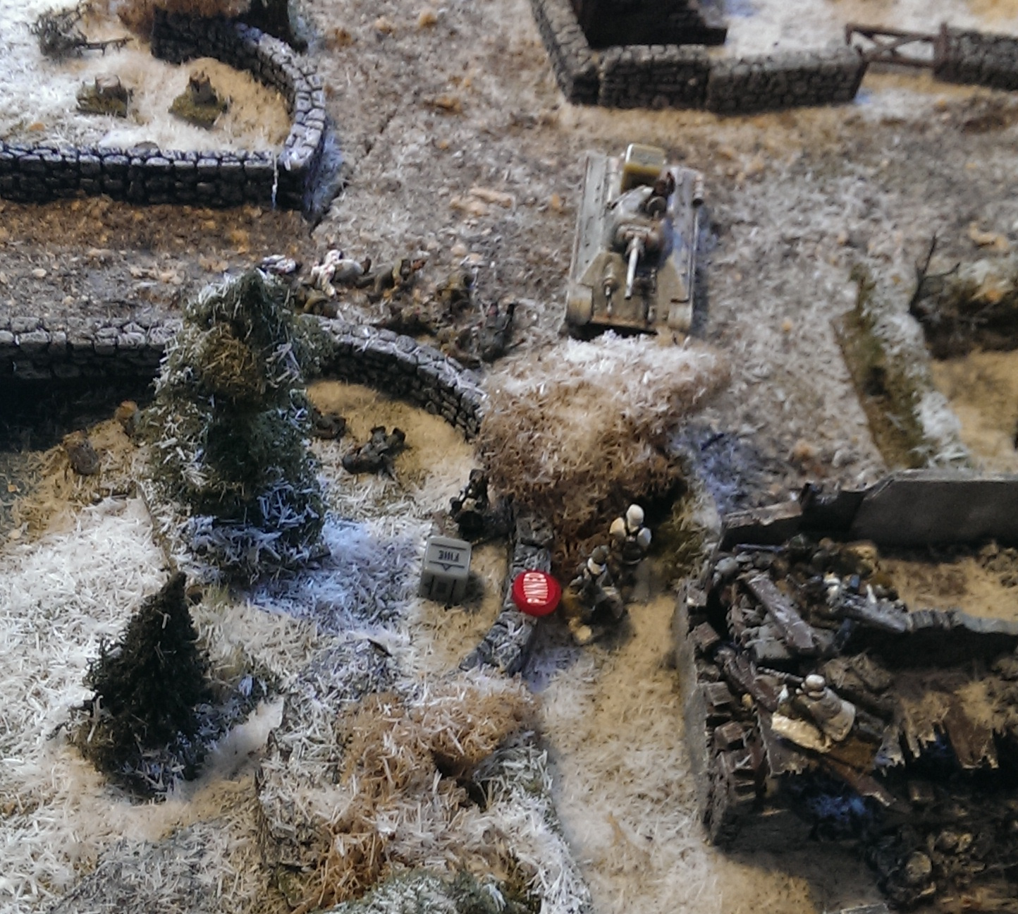 Previous Image Next Image IMAG0217c Russian infantry and a tank cross the bridge, but fail to take the objective buildings.