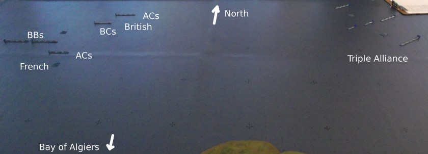 The opposing fleets meet north of the Bay of Algiers