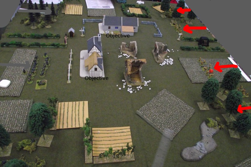 Previous Image Next Image DSCF0002ct Infantry squads advance on to the table. Each side hid a mortar team in the corner behind woods.