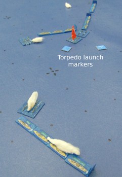 Markers indicate visible torpedo launches.