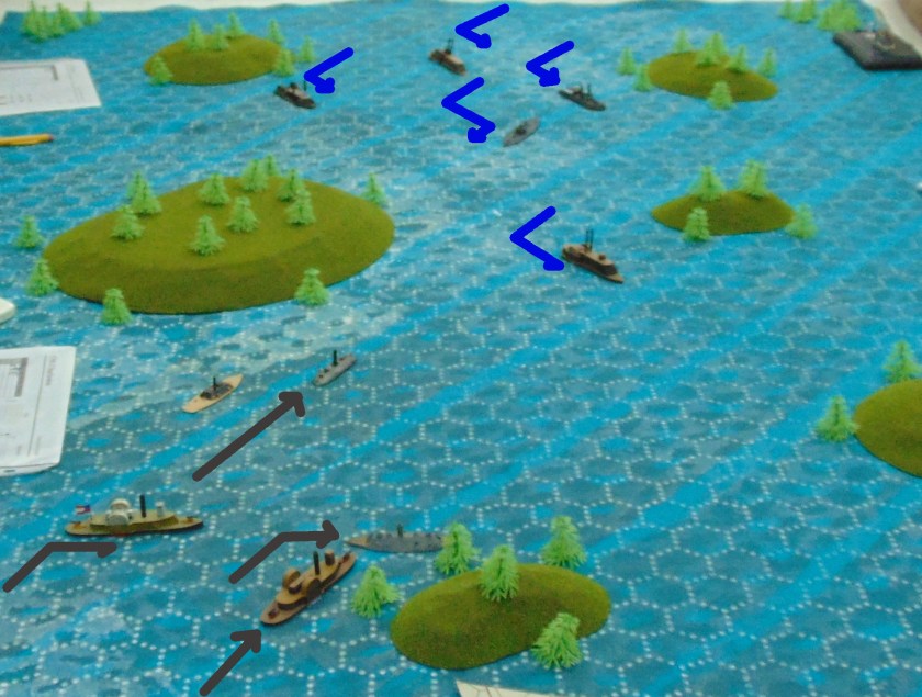 Previous Image Next Image DSC00829c Signaling errors result in an early collision in the Confederate fleet.