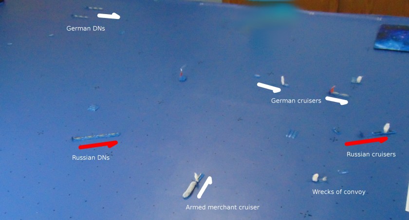 Previous Image Next Image DSC01145c The convoy is destroyed. The old German cruisers are losing the fight with the Russian cruisers.