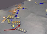 After about 4 hours of play we had to quit. The battle was still close at the end, with about equal numbers of undamaged units.